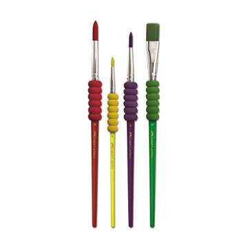 Faber-Castell Soft Grip Paint Brush Set - Kids Paint Brushes - 4 Assorted Paintbrushes for Watercolor and Tempera Paint (F181600)