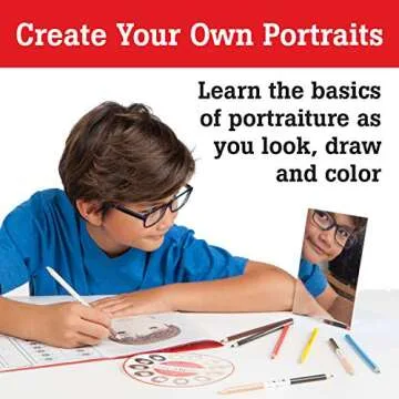 The kit includes 12 vibrant colored pencils along with 3 double-sided blendable skin tone coloring pencils, carefully crafted by makeup artists to represent a wide range of skin tones. This feature allows children to create portraits that reflect real-world diversity, enhancing their understanding and appreciation of different cultures. With the included mirror and easel back, young artists can observe themselves and make portraits that are both unique and personal.