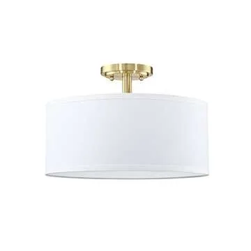 Fabric Drum Shade semi Flush Mount Ceiling Light PS Diffuser,Off White Fabric Chandeliers Shade for Bar, Dining Room, Corridor,Living Room (Gold, 13")