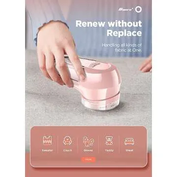 Show moreIntroducing the Bymore Fabric Shaver, a versatile and efficient lint remover that revitalizes your clothing and furniture. This 2-in-1 tool operates either with handy batteries or via a 6FT AC adapter, allowing you to choose the best power source for your needs. With its charming pink design, this shaver is not only functional but also stylish. Equipped with ultra-sharp blades that can reach up to 9000 RPM, the Bymore Fabric Shaver quickly eliminates lint, fuzz, and fuzz balls from your favorite sweaters and upholstery, ensuring they look refreshed and new. The innovative double lock container collects lint safely without risk of spillage, while three size honeycomb smooth surfaces cater to various lint types, ensuring effective performance without damaging your fabrics.