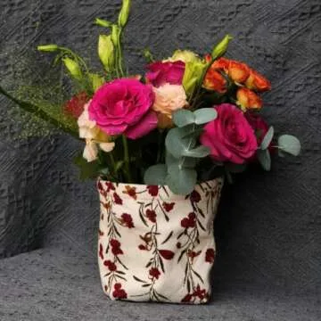 Fabric Tissue Box Cover Square, Vintage Floral Print Corduroy Tissue Holder, Bouquet Wrapping Bag 4.4"X4.4"X5.1", Creamy White
