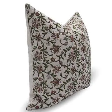 Fabritual Block Print Thick Linen 20X20 Throw Pillowcase Cushion Cover, Outdoor, Decorative Handmade for Sofa and Couch, Fall Decoration, Floral Printed Boho, Home Decor, Aradhana, Green