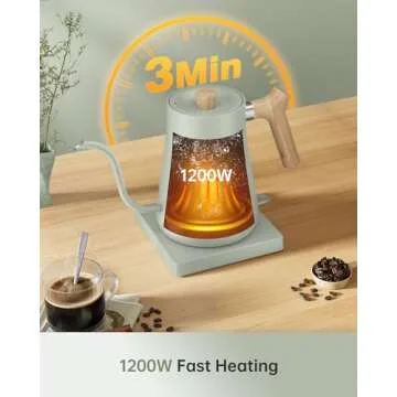 Fabuletta Gooseneck Electric Water Kettle: 3 Min Fast Heating, 1200W, 1L