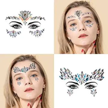 Face Gems, 6 Sheets Mermaid Face Jewels for Makeup Rave Festival Halloween Stick on Face Body Self Adhesive Rhinestone Gemstones Stickers