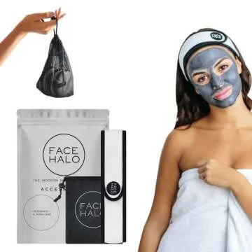 FACE HALO Reusable Makeup Headband & Wash Bag Accessories Pack - Premium Spa Accessories for Women