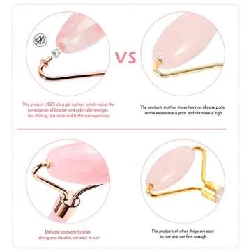 When compared to other jade rollers, the YeeTeching set stands out due to its premium quality materials and thoughtful design. Unlike cheaper alternatives, our roller features a sturdier build that ensures durability while providing a noiseless experience during use. The natural rose quartz not only looks beautiful but offers enhanced cooling effects compared to synthetic materials, making it a superior choice for facial massages.