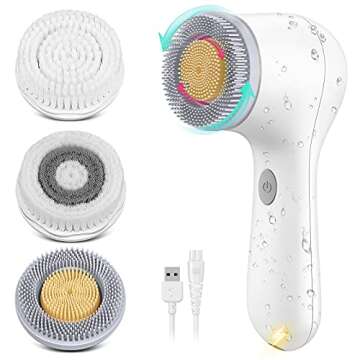 Facial Cleansing Brush Face Scrubber: 7in1 JBK-D Electric Exfoliating Spin Device Waterproof Deep Cleaning Exfoliation Rotating Spa Machine - Electronic Skin Care Wash Spinning System