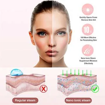 Show more Indulge in luxurious skincare at home with the Amconsure Nano Ionic Facial Steamer, designed to transform your daily beauty routine into a rejuvenating spa experience. This state-of-the-art facial steamer harnesses the power of nano-ion technology, producing steam that penetrates the skin up to 10 times more effectively than traditional hot water steamers. With a generous 100ml water tank, simply fill it with distilled or purified water, switch it on, and enjoy a soothing warm mist in just 15 seconds. Experience up to 15 minutes of professional-grade facial treatment within your own space.