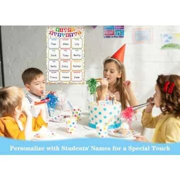 FaCraft Birthday Chart for Classroom - Confetti Birthday Poster Reusable Birthday Calendar Laminated Classroom Birthday Chart Classroom Bulletin Board Decorations Back to School Supplies