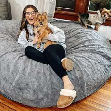 Show moreTransform your relaxation game with the FAFAD Giant Bean Bag Chair for Adults, an unparalleled seating solution designed to mold to your lifestyle. Measuring a generous 6ft, the cover features soft, fluffy premium velvet that feels heavenly against your skin, inviting you to sink into its cloud-like comfort. Whether you are lounging at home, playing games with friends, or simply reading a book, this versatile bean bag chair is engineered to support your leisure needs. Say goodbye to traditional sofas and embrace this chic, modern alternative that’s as stylish as it is functional.