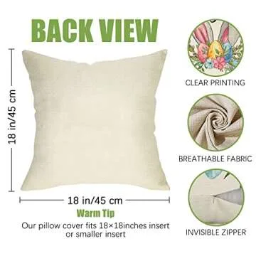 Show more Celebrate the joy of Easter with the Fahrendom Happy Easter Eggs Bunny Decorative Throw Pillow Cover Set. This delightful set includes four beautifully crafted pillow covers, perfect for bringing a cheerful and festive spirit to your home. Measuring 18x18 inches, each pillow cover is made from premium cotton-linen material, ensuring a soft, skin-friendly texture that provides both comfort and style. The sturdy design ensures these covers will retain their shape and aesthetics after every wash, making them a long-lasting addition to your Easter decor.