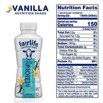 Show moreExperience the goodness of Fairlife Nutrition Plan Vanilla Shakes, expertly designed for nutritional excellence without sacrificing flavor. In each 11.5oz bottle, you’ll find an impressive 30g of high-quality protein sourced from Fairlife ultra-filtered milk. This shake is ideal for anyone looking to boost their protein intake while keeping calories in check, featuring only 150 calories per serving and a mere 2g of sugar. The smooth, vanilla flavor is crafted to satisfy your taste buds without overwhelming sweetness, making it a delightful choice for any occasion.