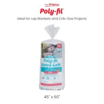Fairfield Poly-Fil Extra-Loft Quilt Batting, Premium Polyester Batting for Quilting, Ideal for Lap Blankets and Crib-Size Projects, Quilting Supplies, 45" X 60"