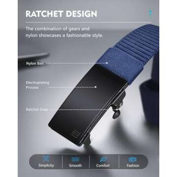 FAIRWIN Men's Ratchet Web Belt,1.25 inch Nylon Automatic Buckle Belt,No Holes Invisible Belt for Men