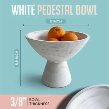 Show more This stunning white wooden fruit bowl brings both elegance and utility to your home. Crafted from sustainable mango wood, it features a distressed whitewash finish that effortlessly complements any décor style, from modern to rustic farmhouse. Measuring 8 inches across and 6.5 inches tall, this bowl is the perfect size for showcasing fresh fruits, snacks, or decorative objects. Use it on your kitchen counter to create a warm, inviting atmosphere or as a centerpiece on your dining table for special occasions.