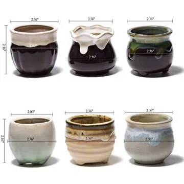 FairyLavie 2.5 Inch Ceramic Succulent Plant Pot, Rustic Style Cute Little Pots for Plants, Planter with Bamboo Tray, Perfect for Home Office Decor and Ideal Gift for Family Friends Colleague, Set of 6