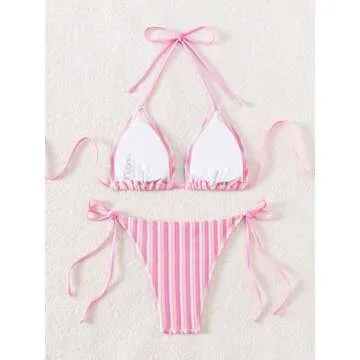 Show moreIntroducing the **Falainetee Women's Striped Printed Bathing Suit** — your perfect summer companion! Designed to make you feel confident and stylish, this Colorblock Textured Pattern Swimsuit Bikini Set in a vibrant pink hue is a delightful addition to your summer wardrobe. The unique design features a trendy striped pattern and a chic tie-back halter top, ensuring you stay fashionable while enjoying sun-soaked days at the beach or by the pool. Crafted from a blend of stretchy fabric, this two-piece set offers both comfort and flexibility for any summer activity.