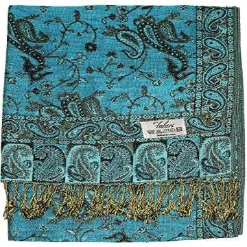 Falari Women's Woven Paisley Pashmina Shawl Wrap Scarf 80" x 27" (Style 1 - Turquoise)