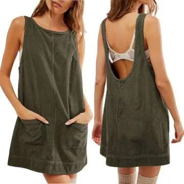 Fall Corduroy Overall Dress for Women Corduroy Jumper Dress A Line Pinafore Dress with Pockets Casual Mini Skirt All Corduroy Skirt Women Suede Pinafore Dress,Green Corduroy Dress,XL