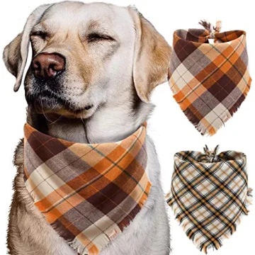 Show moreUnleash your pet's charm this season with our captivating Fall Dog Bandana - Set of 2! Designed for small to medium dogs and cats, these gorgeous washables feature two unique plaid patterns that not only enhance your pet’s appearance but also keep them cozy. Measuring at a perfect 19x19 inches, these bandanas provide ample coverage while leaving enough room to secure a snug fit. The bandanas are made from high-quality, soft cotton fabric, ensuring breathability and comfort, making them perfect for any outdoor adventure with your furry friend.