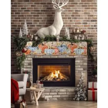 Fall Mantel Scarf for Fireplace 70 x 17 inches Thanksgiving Pumpkin Maple Leaves Rustic Botanical Southwestern Style Decorations Fireplace Mantle Scarf Cover Fireplace Scarf Top Runner for Home Party