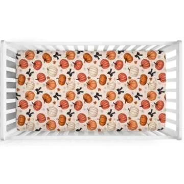 Fall Pumpkin Bows Daises Baby Crib Sheets 52''x28'' Vintage Autumn Pumpkins Maple Leaves Dots Fitted Crib Mattress Cover for Boy Girl Thanksgiving Soft Bed Sheet for Standard Crib Toddler Mattress
