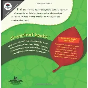 Show morePrepare to embrace the beauty of autumn with **Fall Weather: Cooler Temperatures (Cloverleaf Books ™ ― Fall's Here!)**. This captivating entry in the Cloverleaf Books series offers young readers an enchanting exploration of the enchanting changes that come with the fall season. From vibrant leaves to chilly breezes, this beautifully illustrated book is not only informative but also visually engaging, making it a perfect addition to any child’s library. The pages are filled with rich narratives and delightful depictions that accurately capture the essence of fall, fostering an appreciation for nature's seasonal inventions. A perfect blend of education and entertainment, this book is designed for curious minds eager to learn about the wonders of weather during this picturesque time of year.