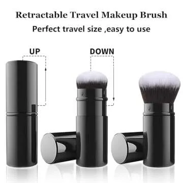 Falliny Retractable Kabuki Makeup Brush, Travel Face Blush Brush, Portable Powder Foundation Sunscreen Brush with Cover for Blush, Bronzer, Buffing, Highlighter Flawless Powder Cosmetics