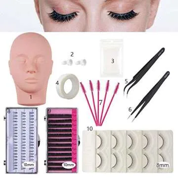 False Eyelashes Extension Practice Exercise Set for Professional Flat Mannequin Head Lip Makeup Training and Eyelash Graft(No Contain Glue)