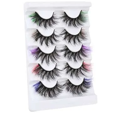 False Eyelashes with Color, ALPHONSE 5D Fluffy Faux Mink Colored Lashes Dramatic Decoration Eye Lashes Set for Cosplay Costumes 5 Pairs Pack