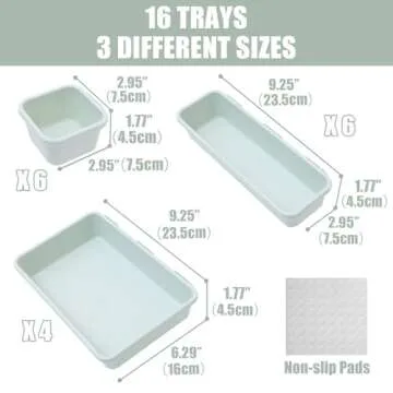 Famhap 16 PCS Plastic Drawer Organizer Set, Desk Drawer Divider Organizer Trays, Vanity Storage Bins for Makeup, Jewelry, Utensils, Gadgets for Kitchen, Bedroom, Bathroom and Office (Green)