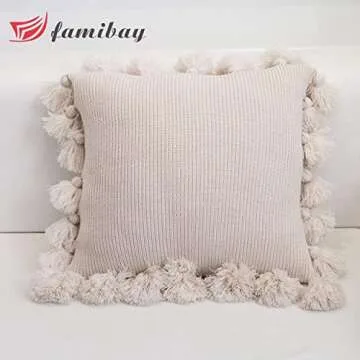 Show moreIntroducing the Stylish Boho Knitted Pillow Covers by famibay, a perfect way to enhance your living space with a touch of charm and comfort. Crafted from high-quality 100% acrylic woolen yarn, these pillow covers are not only durable but also exceptionally soft to the touch. Each cover features exquisite handmade pom pom tassels and a unique striped cable knit design that infuses a warm, boho vibe into your home decor. Measuring at a convenient 18 x 18 inches, they snugly fit most standard pillow inserts, instantly rejuvenating the look of your sofa, couch, or bed. Whether you aim for a cozy reading nook or a stylish living room, these pillow covers will elevate your space.