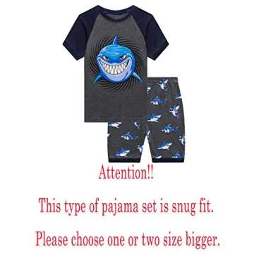 Family Feeling Big Boys Shark Pajamas Short Sets 100% Cotton Kid Summer Pjs 10