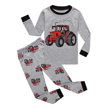 Family Feeling Tractor Little Boys Long Sleeve Pajama Sets - Comfy Cotton PJs for Kids