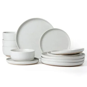 Show moreIntroducing the Famiware Milkyway Plates and Bowls Set, a stunning 12-piece dinnerware collection designed for versatility and style. This beautiful set includes four 10.25” dinner plates, four 8” salad plates, and four 5.75” cereal bowls, making it perfect for family dinners or entertaining guests on special occasions. Crafted from organic clay, this dinnerware features a unique speckled design that effortlessly adds a touch of elegance to any table setting. The durable ceramic material provides excellent heat retention, ensuring your meals stay hotter for longer.