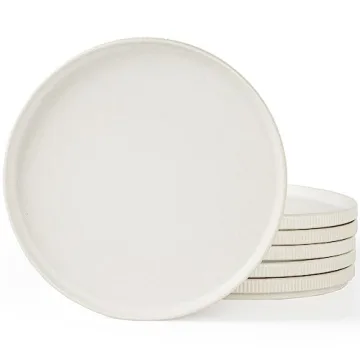 Show more Introducing the **Famiware Star Dinner Plates for 6**, the perfect blend of artistry and functionality in your dining space. Measuring 10 inches in diameter, these plates are designed to accommodate a variety of meals, from sumptuous pastas to delightful salads. Crafted with a unique double reactive glaze that brings out stunning visual depth, each plate showcases a distinctive finish that might differ slightly from screen to screen due to the handcrafted nature of their creation. Not only are these plates aesthetically pleasing with their modern rustic matte white finish, they are also made strong and durable – a gamble you’ll be glad you took!