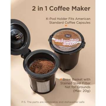 Famiworths Mini Coffee Maker Single Serve, Instant One Cup for K Cup & Ground Coffee, 6 to 12 Oz Brew Sizes, Capsule Coffee Machine with Water Window and Descaling Reminder, Romantic Pink