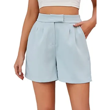 Famulily Comfy Pleated Front Shorts for Women - Casual High Waist, Elastic Waist