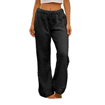 Famulily Womens Winter Plush Fluffy Pajama Pants Warm Fuzzy Lounge Pants Sleepwear Bottoms Black M