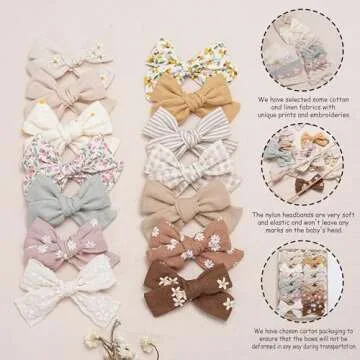 Fancy Clouds Baby Girl Bows and Headbands,14 pcs Stretchy Soft Nylon Hairbands Hair Bows for Newborns, Infants, Toddlers - Handmade Baby Hair Accessories for Girls Gifts