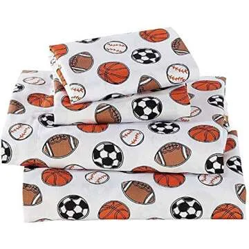 Fancy Linen Crib Sheet Set Flat Fitted and Pillow Case Set for Boys/Girls Multi Color Sport Baseball Basketball Football Soccer White Black Orange Brown New