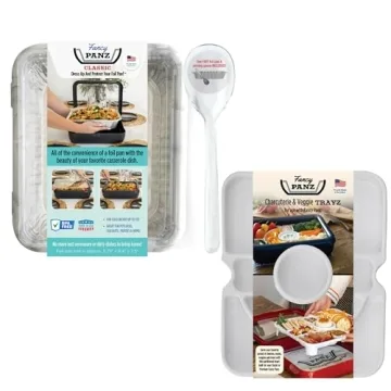 - All-in-One Bundle: This set includes one Fancy Panz, one foil pan, a reusable serving spoon, and the Charcuterie tray, making it a complete solution for food serving.
