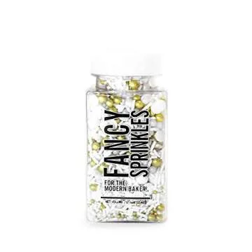 What sets these sprinkles apart is their unique blend of large and small pieces that offer a joyful pop of color and grandeur. Their shimmering metallic gold finish combined with pristine white speckles creates a beautiful contrast that will make your desserts the talk of the party. Not only do they look stunning, but they also adhere perfectly to all types of icing, ensuring that your treats not only taste incredible but also have a truly captivating appearance.