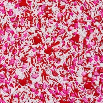 Fancy Sprinkles Serendipity Sprinkles, Red, White, And Pink Crunchy Jimmies, Candy Pearls, Hearts, Stars, And Lips (0.5c)