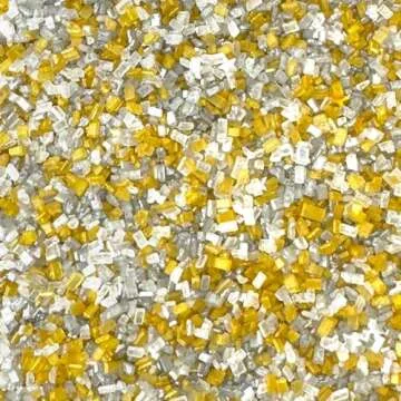 Fancy Sprinkles St. Patty's Day Filthy Rich Fancy Sugar Silver and Gold Pearlescent Sugar Crystals Flecked with Mini Edible Glitter Stars (4 OZ)