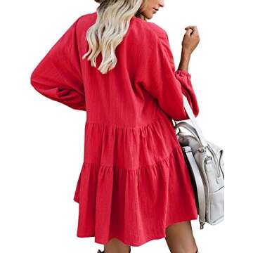 FANCYINN Cute Shift Tunic Dress for Women - Long Sleeve Babydoll Red Dress M