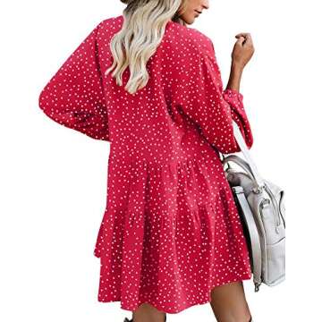 Introducing the FANCYINN Long Sleeve Shift Tunic Dress, a stunning blend of style and comfort. This stylish red dot dress epitomizes the essence of chic summer attire. Crafted from lightweight polyester and a delicate paris bead fabric, it keeps you cool and comfortable during those balmy days. The flattering silhouette features a playful babydoll cut with ruffle details, making it ideal for various occasions.