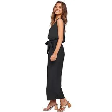 Show more Step into effortless style with the FANCYINN Women’s 2 Piece Crop Pants Set, a meticulously crafted ensemble designed to elevate your fashion game. Made from a blend of 95% polyester and 5% spandex, this set promises super softness and lightweight comfort, making it your go-to outfit for warm weather. The design features chic wide-leg cropped pants with a high elastic waist, complemented by a stylish belted detail, offering a flattering fit for various body types. Paired with a trendy V-neck tank top featuring wide straps, this outfit seamlessly transitions from casual outings to professional settings.