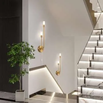 Fang Yan Mei Plug in Wall Sconce,Modern LED Gold Wall Fixture Vanity Light Fixture with Glass Shade, mid-Century Wall Light Modern Gold Wall Sconce for Bathroom, Living Room,22.4inch(Left-Short)