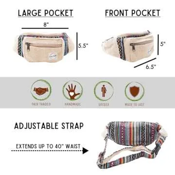 Fanny Pack for Women & Men Hemp Cross Body Fashion Waist Pack Bum Bag with Adjustable Straps Belt Bag For Running Hiking Travel
